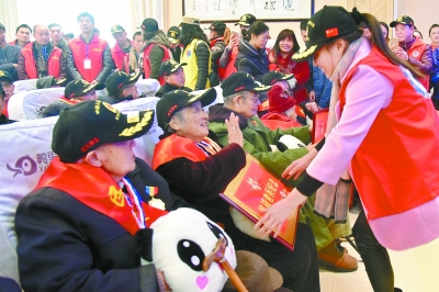 平江关爱抗战老兵 2016年12月20日 22:58 非萧 12月17日,平江县在平江起义纪念馆举行抗战老兵座谈会,43位健在的抗战老兵与家属和志愿者参加。关爱抗战老兵志愿者为老兵赠送了暖手袋、红木拐杖等礼物和慰问金。 (时间:2016年12月20日 来源:湖南日报)