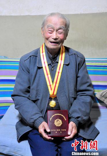 八十年前,学生王宗昌假冒学长之名,和六名校友一起考入黄埔军校参军杀敌。图为2015年王宗昌获得中国人民抗日战争胜利70周年纪念章。受访者提供