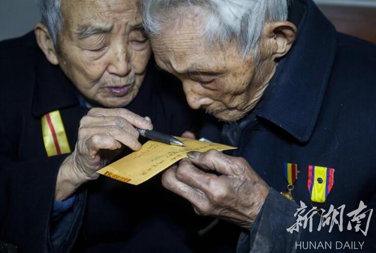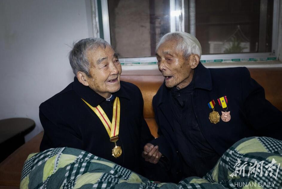 12月28日,新年将至,102岁的李超然和101岁的湛中一,相聚于汨罗江畔。当年的小伙已老,如今脸上写满岁月沧桑。忆起当年热血抗战的往事,两位老人感慨万千。