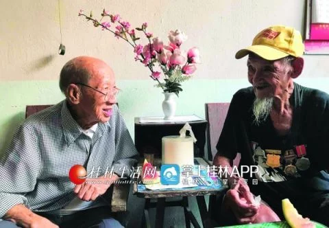“老爷子,这个老太太也是抗战老兵,她也是河南人。今天带你来认识一下这个老乡。”近日,居住在临桂区花堽村委铁炉村的百岁抗战老兵李接福在桂林关怀抗战老兵志愿者的帮助下,来到临桂五通镇上祥村委祥田村王正桂老人的家里。