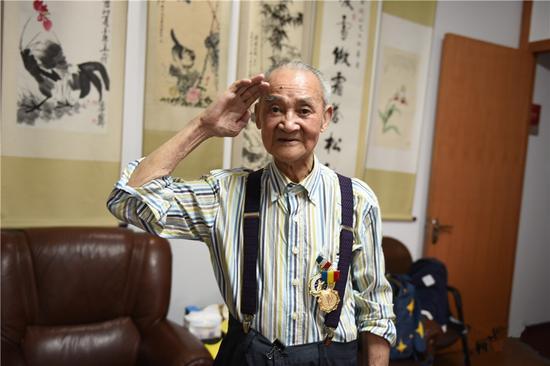 1945年抗战胜利,金城从前线回来了,虽然才打了两年仗,但整整影响了他一生。“我们保卫祖国,很光荣,一点也不害怕。”他说,当年有个日本人让他挑水去山上,他不服从,日本人就打他耳光,这种痛,他一辈子都记得。