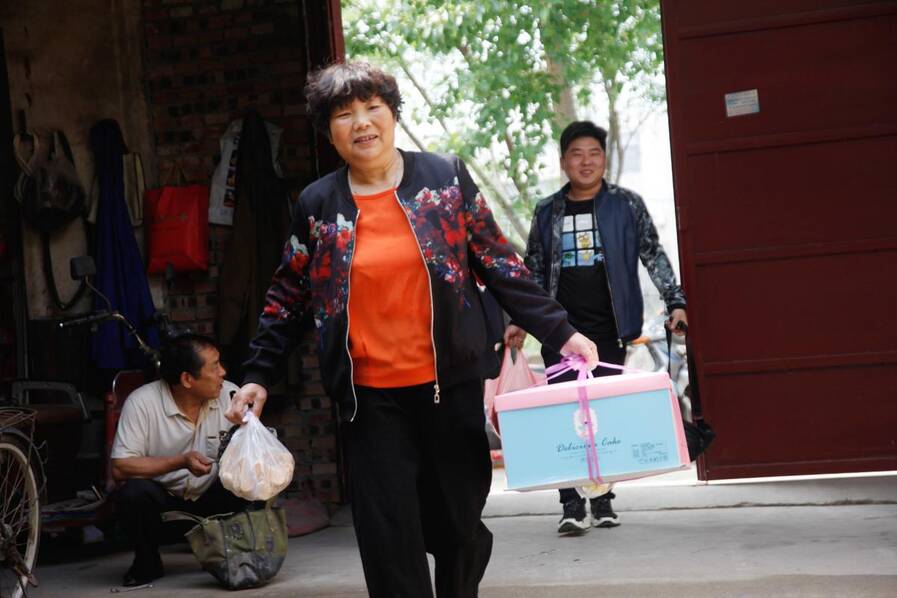 二十六日上午一大早志愿者就来到老人家中为老人送上了生日蛋糕。