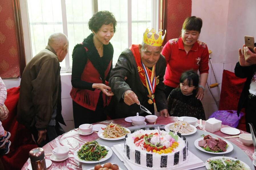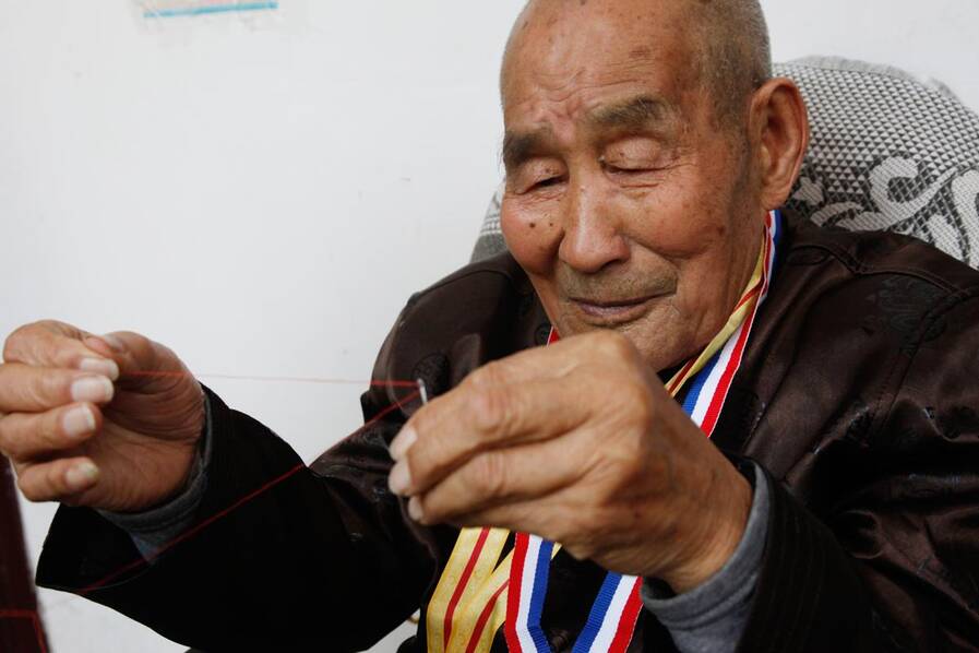 眼不花耳不聋,被儿子儿媳照顾的很好。儿媳做针线活的时候他还帮儿媳穿针引线。