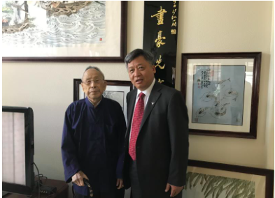 5月28日,李强民总领事看望百岁高龄的中国籍抗战老兵、旅居休斯敦的著名画家与慈善家萧纪书。