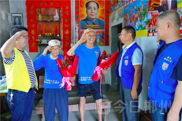 当日,是“七七事变”81周年纪念日,湖南老兵之家、郴州关爱抗战老兵志愿者团队携手开展“铭记历史、珍爱和平——纪念七七事变81周年”关爱抗战老兵活动,接受爱国主义教育和革命传统教育。据悉,从2004年至今,郴州关爱抗战老兵志愿者发起了寻找抗战老兵活动,共发现和寻找到282位抗战老兵,到目前健在的有130人,其中最小者88岁,最年长者已是107岁高龄,他们都是郴州关爱抗战老兵志愿者团队的长期帮扶对象,每到重大纪念日、逢年过节或老兵的生日,志愿者都会到家中进行走访慰问和帮助解决困难,为老兵们送去暖心的关爱。