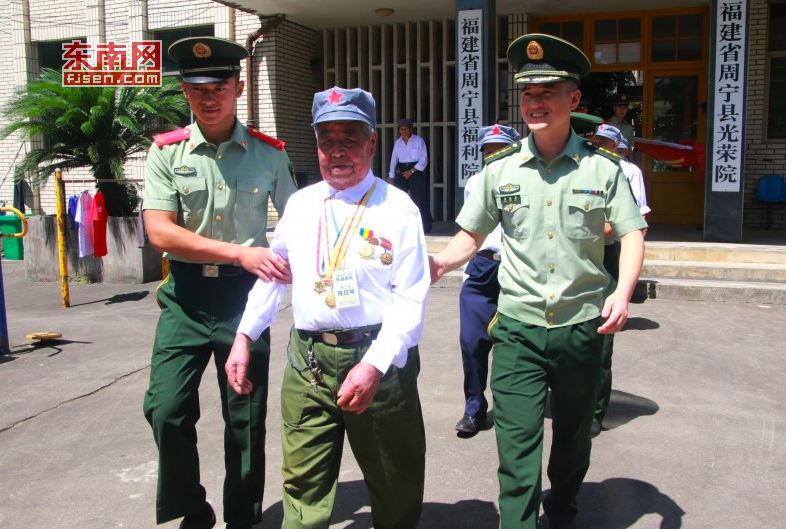 这位老兵名叫陈日琴,福建省周宁县人,1925年出生,1950年2月加入中国共产党,于1943年被国民党军队“抓壮丁”入伍,后于1949年1月淮海战役时被收编入解放军第二十二军六五师一九四团五连,先后担任副班长、班长,1949年5月参加渡江战役,直至全国解放。在部队期间荣立二等功1次、三等功4次、四等功1次,2015年被中央军委授予“中国人民抗日战争胜利70周年纪念章”。