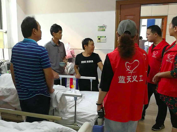 今年92岁的邓老,无儿无女,家住崆峒村,几天前因为摔跤导致头部受伤,造成多处骨折,并伴有其他病症,已处于病危状态。蓝天志愿者协会了解情况后,通过网上募捐,筹得1000余元爱心款,并组织义工,在邓老住院期间陪同值守,希望通过陪伴给老人更多的关爱。
