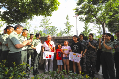 听抗战老兵讲故事 2018年08月10日 14:57 Joyue-Chang 7月30日,武陵区武装部组织专武干部、女子民兵及小学生们到常德会战碉堡群——白马湖北碉堡前,聆听92岁的抗战老兵周凤岐讲抗战时期的光荣故事,学生们还为周凤岐送上了亲手绘制的纪念手抄报。 (时间:2018年8月7日 来源:常德日报 作者:裴维维)