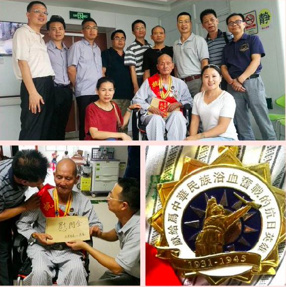 来自河源的抗战老兵徐坤云因在抗日战场上左腿中芥子毒气多次发作,导致左手左脚均显无力状态,目前正在广州孙逸仙纪念医院医院接受治疗。省委会领导在得知消息后,高度重视,立即指示省委会祖统委及省委会有关处室人员前往看望慰问。8月13日下午,省委会祖统委员、河源关爱抗战老兵志愿者团队负责人赖弥平,省委会参政处有关人员,省直八总支党员黄国俊与民革河源市委会有关同志等一起前往孙逸仙纪念医院探望了徐坤云并送上慰问金。带去了民革组织和党员的问候与祝福,并祝愿抗战老英雄早日康复。