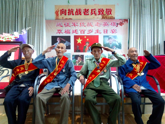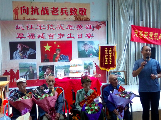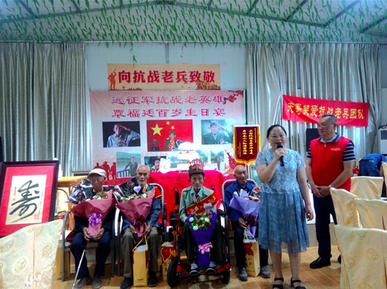眉山志愿者及爱心人士齐聚青神为百岁抗战老兵祝寿