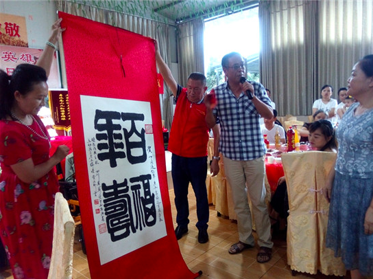 北京的关爱抗战老兵资深爱心人士曹治邦代表北京互助抗日老兵论坛的全体志愿者特意发来贺信,并遥寄了一幅向老兵祝寿的亲笔书法作品。