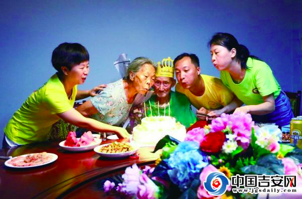 鲜花、掌声、蛋糕、歌舞……8月12日,新干县的一位抗战老兵张春华在志愿者们的关爱祝福下,度过了他95岁的寿辰。“祝你生日快乐!……”在烛光的映衬下,张春华老人红光满面。他说,感谢志愿者们的陪伴,这是他们为他过的第三个生日。他最大的愿望就是能看到祖国越来越强大,真正实现中华民族伟大复兴的中国梦。