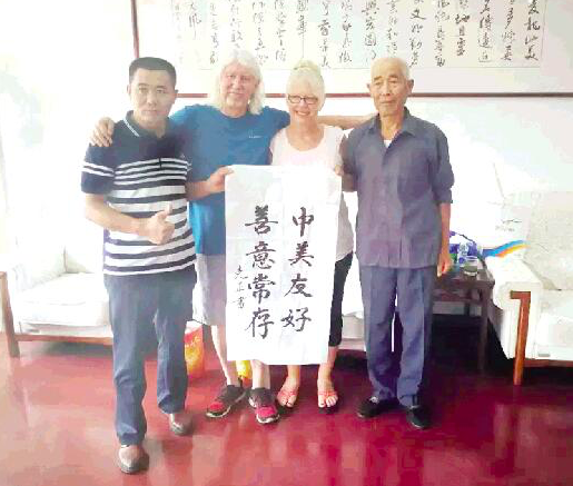 郝克正(右一)赠给詹姆斯、丽莎书法作品。