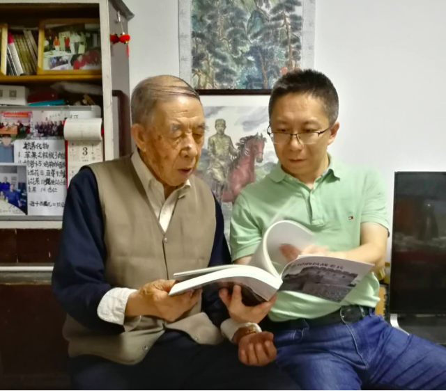 从陈赓娃娃团成员到海军少将,93岁老兵王恩平少将在阅读《致敬:不能忘记的抗战老兵》。(陈龙狮摄)