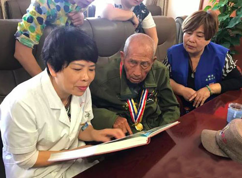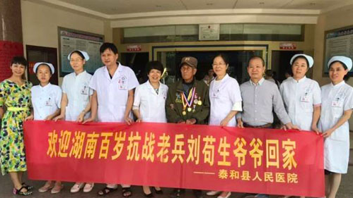 77年前,一名湖南籍抗战士兵,因作战负伤在惊喜吉安市泰和县后方医院治疗,77年来,泰和县始终是老兵的魂牵梦绕之地。10月3日上午,湖南98岁抗战老兵刘苟生老人在其孙子和志愿者李玫的陪同下,回到了他曾经熟悉的地方——泰和县人民医院圆了自己77年来的梦。老人参观了医院的院容院貌和部分临床科室,看到医院发展得这么快,变化如此之大,由衷地感到高兴。