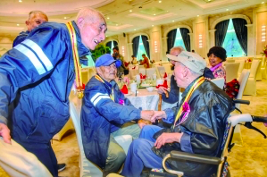 正如老兵朱亚泉说的那样,老兵不老!年过九旬的他们,一个个精神十足。104岁的老兵徐恭权,是这次聚会中最年长的一位。“我还想活到120岁!”他自豪地说,“我们还不老,希望大家活得超过我们,健康长寿!”