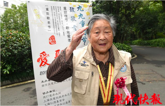 10月14日,来自江浙沪地区的61名抗战老兵相聚南京,一起欢度重阳佳节。60+1,聚会现场还有唯一一位女抗战老兵,她叫周颂霞。1944年,当时的抗战已经如火如荼,正在上师范的周颂霞不顾家庭的极力反对,偷偷跟同学一起报名参加了青年远征军,被分配至208师女生大队的救护组,直至抗战胜利。