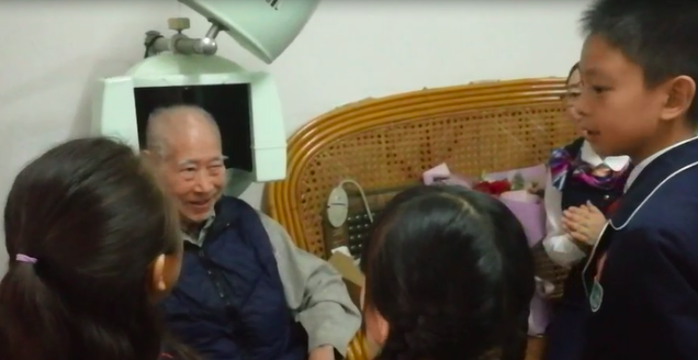 “去年,文爷爷到学校为我们讲故事,我一直记得他。今天可以来看看他,觉得非常开心。” 中黄外国语小学学生李若然说,等到文星有的100岁生日,她还想和同学们一起带着蛋糕,再次探望他。