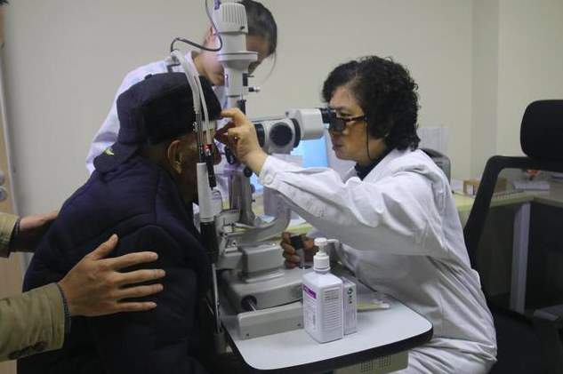 今年10月初,抗战老兵志愿者了解到情况后立即将黄银武老人的情况同步给了“抗战老兵光明行”公益救助组织,10月22日,重庆爱尔眼科总院医护人员和抗战老兵志愿者一同前往黄银武老人位于江津支坪镇的家,随行眼科医生对爷爷的眼病进行了初查,发现老人患有严重的白内障,视力已经下降到只能看到眼前的手晃动,不能分辨出几个手指头。随后,医务人员将黄银武老人接到医院进行了进一步的检查。