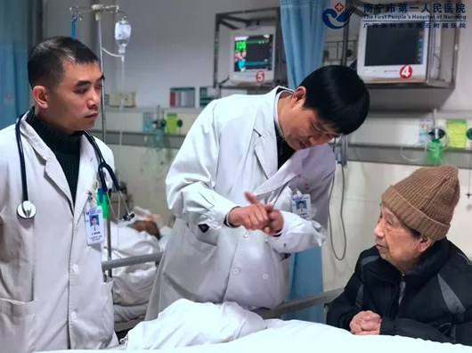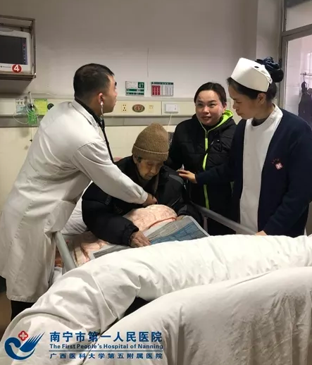 南宁市第一人民医院心内一区黄宇辉医生为宋老查体