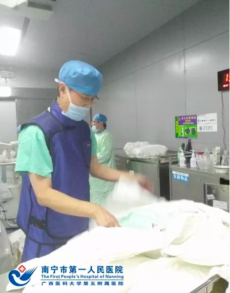 南宁市第一人民医院心内一区许春平主任在为手术做着准备