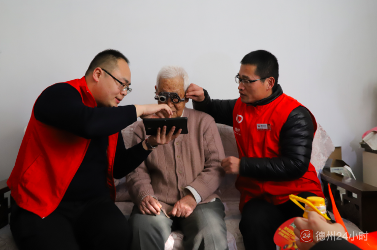 1月28日是农历小年,当天德州市义工协会联合多家爱心企业,看望慰问刘延明、李琼等5名抗战老兵,为他们送去了价值5000元的米、面、油、牛奶等礼品,以及书法家亲手书写的春联、“福”字,德州英翔视光姜玉坤眼镜公司的工作人员还现场为老人们测视力、配眼镜。