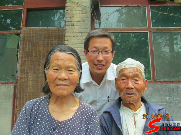 志愿者张晋峰2014年看望抗战老兵杨兴礼夫妻时合影