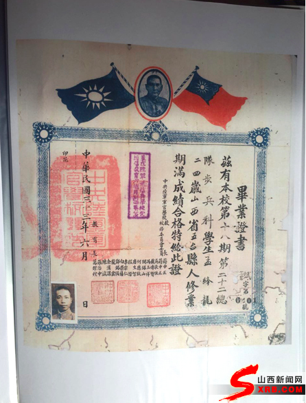 抗战老兵孟一平(曾用名:孟庆贤 孟绛龙)的黄埔军校毕业证书