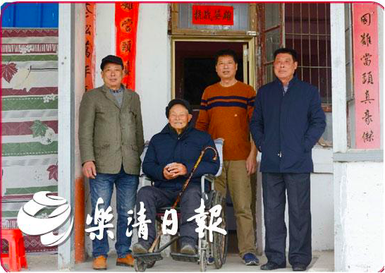 近几年,老人身体状况有点下降,但4个儿子都很孝顺他,每月轮流照顾他起居。他每天会到村里的为老服务中心待两个小时,听听越剧、聊聊天。怕他走累了,儿子会推着轮椅带他在村里溜达。他喜欢看报纸,依然保持每天浏览《乐清日报》的好习惯。