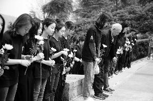现场来参加祭奠活动的,还有来自南京信息工程大学长望学院等学校的百余名大学生志愿者,学生代表徐直说:“虽然现在我们生活在和平年代,但这和平来之不易。向抗战英雄们致敬!”