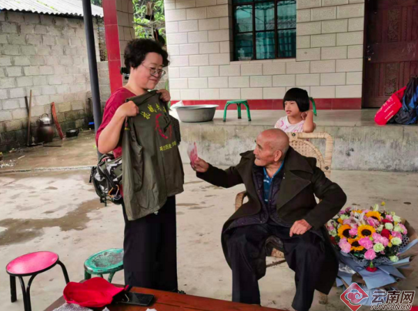 多次接送许多高龄抗战老兵回家,经验丰富的四川关爱抗战老兵川军团的代表马正群大姐,从四川成都长途跋涉,赶赴怒江,看望慰问裴海清老人。
