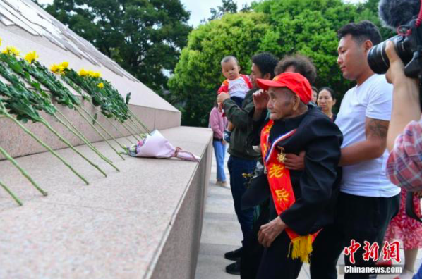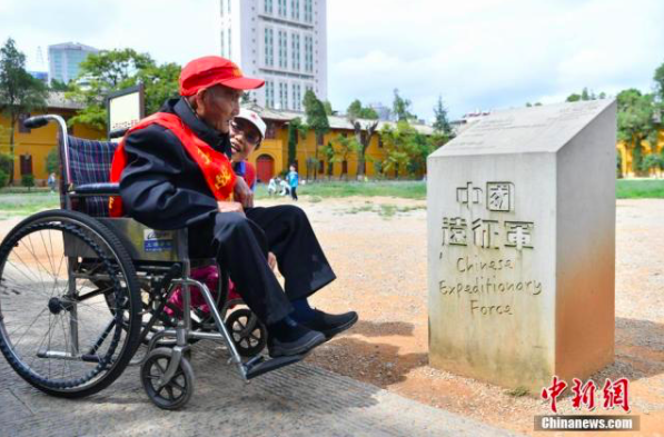 8月5日,九旬抗战老兵裴海清从长期居住的云南怒江来到昆明,在家人的陪同下参观昆明抗战胜利纪念碑、云南陆军讲武堂等景点。据了解,1937年,14岁的裴海清加入川军122师出川抗战,从此再也没有回家。此次在云南政协报、深圳龙越慈善基金会等各方的帮助下将回到四川老家,与阔别多年的家人团聚。中新社记者 任东 摄