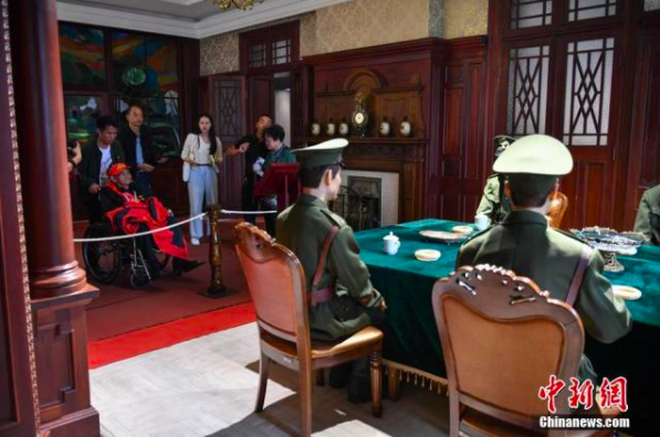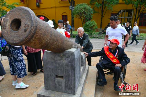 8月5日,九旬抗战老兵裴海清从长期居住的云南怒江来到昆明,在家人的陪同下参观昆明抗战胜利纪念碑、云南陆军讲武堂等景点。据了解,1937年,14岁的裴海清加入川军122师出川抗战,从此再也没有回家。此次在云南政协报、深圳龙越慈善基金会等各方的帮助下将回到四川老家,与阔别多年的家人团聚。图为老兵裴海清参观云南陆军讲武堂。中新社记者 任东 摄