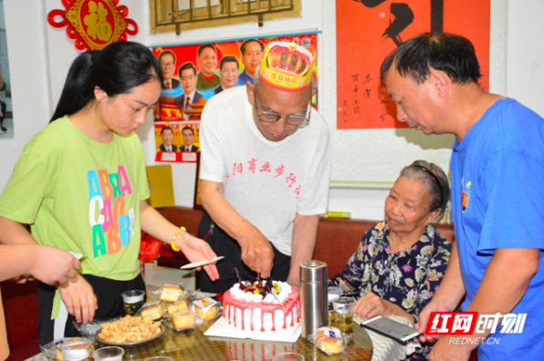 桂阳县古郡志愿者协会志愿者们为94岁抗战老兵赵金义庆生