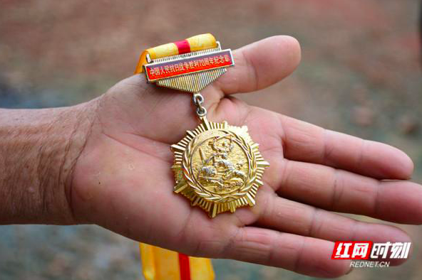 第一站到达老兵刘福泰家中。刘福泰97岁口齿却很清晰。他17岁当兵,参加过常德会战、衡阳会战,抗日战争胜利后,又参加了抗美援朝战争,任部队里的机枪手。“以前我是部队里的主射手,旁边都配有两个副射手。一个负责拿子弹一个负责装子弹。打枪时要注意快准狠,打多了就容易暴露位置。”说起机枪,刘福泰的话络绎不绝,眼里透露出自豪。