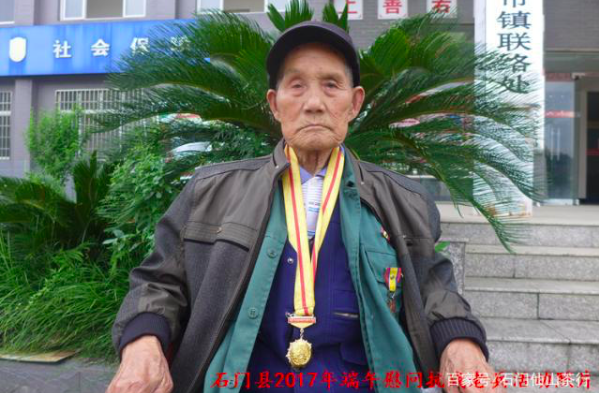 至此,石门县参加过抗日战争的原国军部队抗战老兵已剩下100周岁的原70军老兵,光复台湾的尖兵连连长陈安贤、97岁的原18军老兵李育金、分别是95岁和94岁的青年军老兵宋光和和覃道良、94岁的原66军老兵叶文清和92军老兵熊继刚,97岁的58军老兵向多喻,连两桌麻将都凑不齐了!
