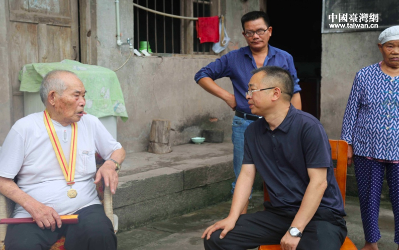达州市台办主任黎玉维与原国民党抗战老兵交谈(图片来源:达州市台办)