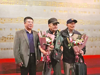 大家争相和两位抗战老兵合影留念。陈彦 摄