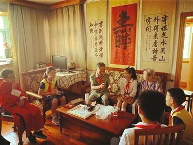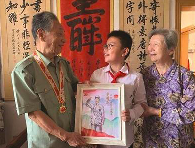 听抗战老兵爷爷讲故事 小学生送上手绘戎装敬礼像