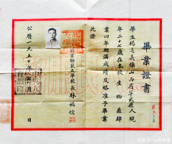 1946年9月,父亲考入北京师范大学生物系,因身体素质超群,成为校篮球队的队长,并获得诸多荣誉。1950年,父亲大学毕业后分配到天津工作。当时,山西省政府号召全国各地晋籍有识之士和热血青年建设家乡,他积极响应,毅然放弃各方面条件相对优越的生活和工作,在太原一中教师岗位上一干就是40年,直到1988年光荣退休。作为优秀的生物老师,早在1958年,他自制的水螅、鲫鱼内脏构造,就作为山西省获奖作品被送到北京参加全国展览。生物课列入高考后,他所带的班曾获得全省第一的好成绩。