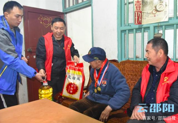 当天,市文联组织文艺家到邵东开展“梦圆2020·致敬邵阳老兵”采风活动。文艺家们深入简家陇镇枫木村、野鸡坪镇、大禾塘街道坝上新村,走访了张楚仲、刘超、张永世3位参加“雪峰山会战”的抗战老兵,给他们送上米、油等生活物资。每到一处,文艺家们和抗战老兵亲切交流,询问他们的生活情况和身体状况,听他们讲述抗战的故事。