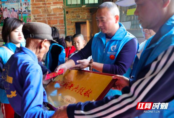 衡阳县微公益志愿者协会向老兵王志和敬赠“向抗战老兵致敬”的匾牌。