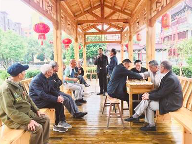 社区发言人、黄华社区老年协会副会长朱志浦:上岩村的龙池公园风景优美,池旁有一块空地,村民一直渴望建一条休闲长廊。93岁的抗战老兵朱兴龙牵头筹资建设,通过半年时间的努力,长廊终于建好了。