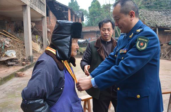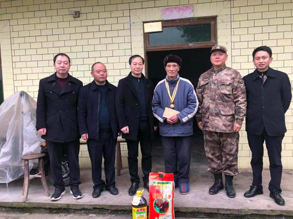 12月12日,在新年元旦来临前夕,荣县退役局牵头,联合县委统战部、县人武部、民革荣县总支对居住在荣县的5名抗战老兵进行慰问,为他们佩戴抗战纪念章、发放慰问品及慰问金。