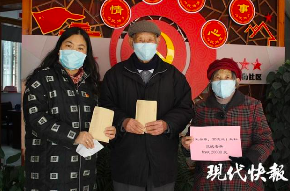 严峻的疫情形势,时刻牵动着全国人民的心。近日,90 岁的抗战老兵王永康和妻子贾德兰,互相搀扶着走进江阴市澄江街道北大街社区,将 2 万元现金交到社区工作人员手中。