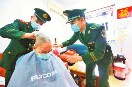 昨日,在深圳中英街,来自武警广东省总队执勤第三支队十三中队的官兵与社工、义工一起来到结对帮扶的92岁老人张胜家中,为老人理发、打扫卫生、防疫消杀。张胜是一名抗战老兵,与老伴住在四楼,行动不便,生活难以自理。武警官兵每周都会上门为他们提供便利帮助。