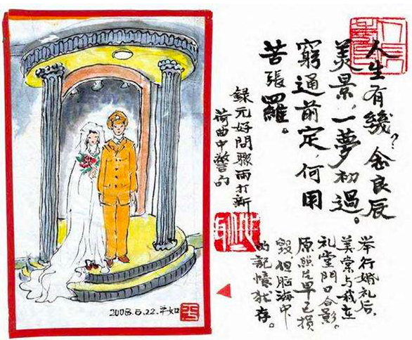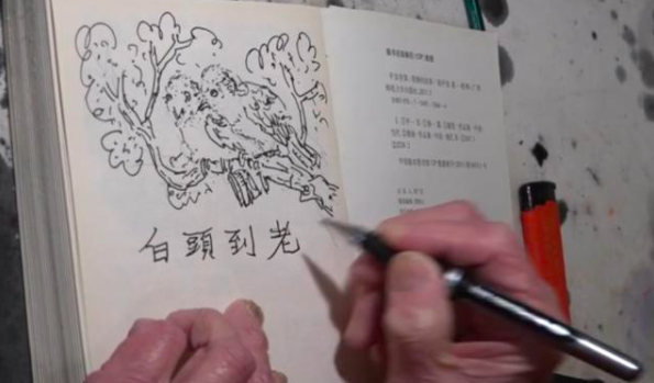 后来不能说老先生走了出来,而是他找到了一条可以安抚自己的路,那就是用画笔画下自己和老伴62年的相濡以沫。
