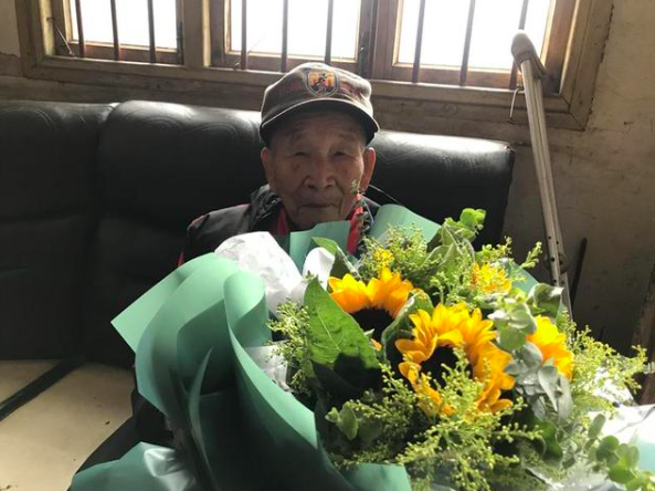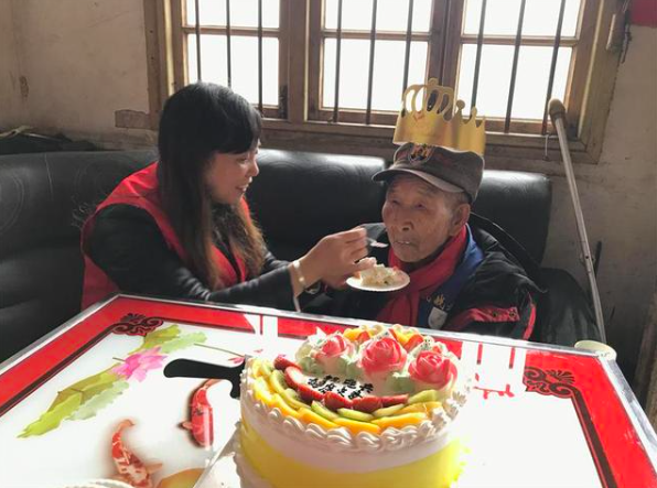 古郡志愿者协会理事 张小红说:“ 我们已经连续几年给爷爷过生日了, 每次来他都和我们拉拉家常,讲抗战故事。”