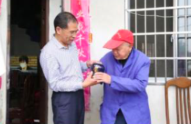 陈位明和抗战老兵魏承言亲切交谈,并为他送上慰问金、黄金茶等慰问物资,叮嘱魏老注意身体,保重自己