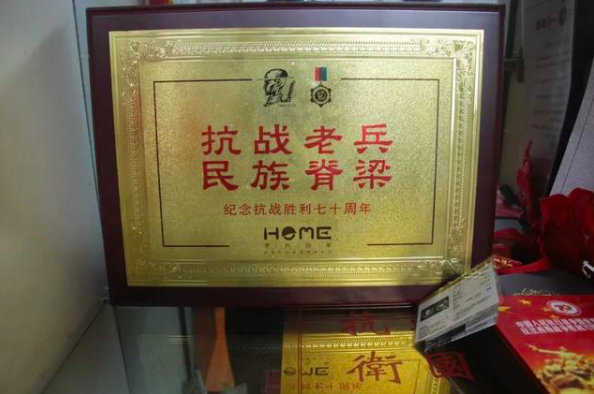 记者在曾令端家中看到,橱窗里整齐地摆放着“抗战老兵民族脊梁”纪念抗战胜利七十周年牌匾、“庆祝中华人民共和国成立七十周年”纪念章、抗战胜利七十三周年纪念章等众多荣誉,有些奖章摆放了多年,可依然一尘不染,可以看出曾平燕对老人的照顾相当细致。